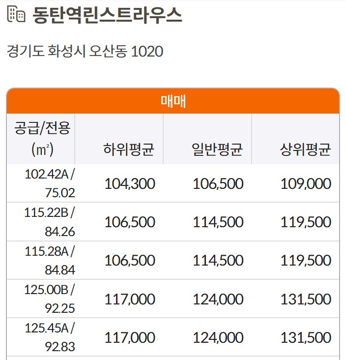 동탄 아파트 시세 현황